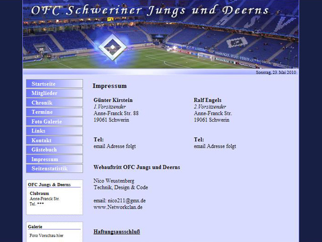 Hier ein paar Screenshots der neuen Webseite vom OFC Schweriner Jungs und Deerns